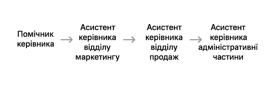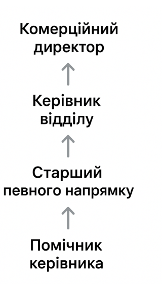 Це посадове зростання. Помічник керівника→спеціаліст→старший певного напрямку→керівник відділу→комерційний директор